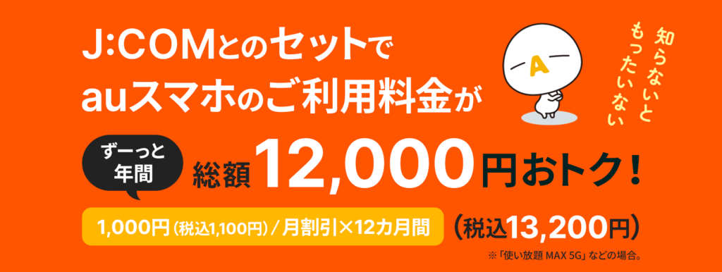 ただし、「auスマートバリュー」の適用にはJCOMの固定電話またはテレビの契約も必要です。固定電話は月額1,463円 と高いので、テレビの方が良いかもしれません(^^;)