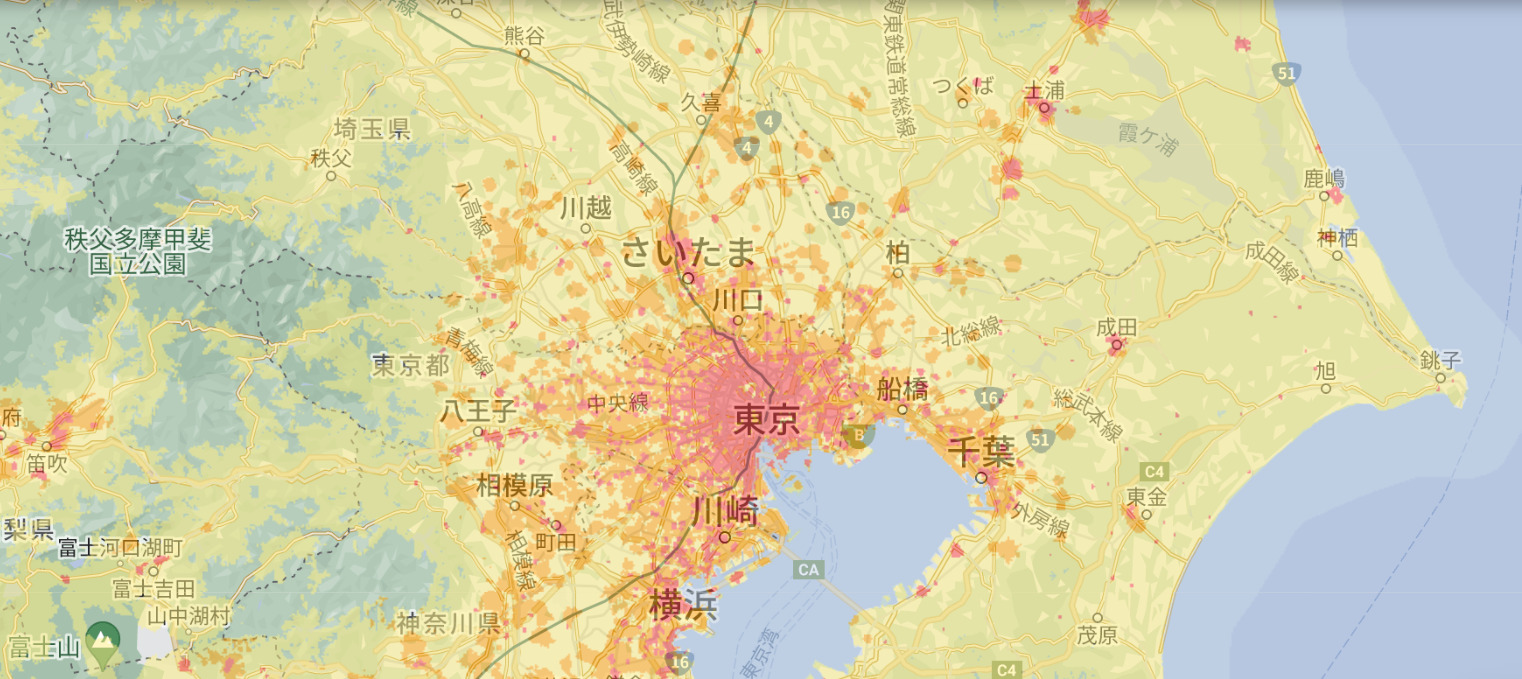 中でも赤い場所は、5G通信が可能なエリアなので、より快適にネットが利用可能です。