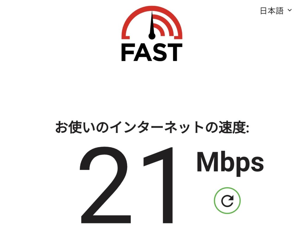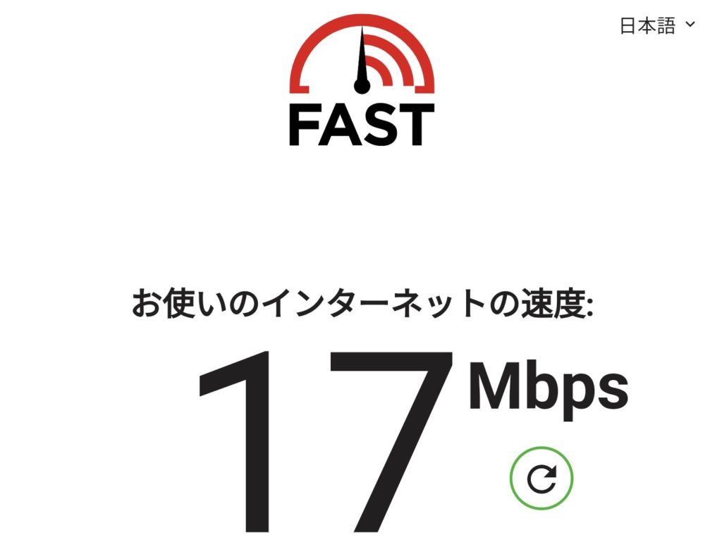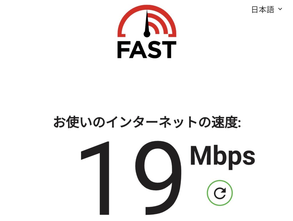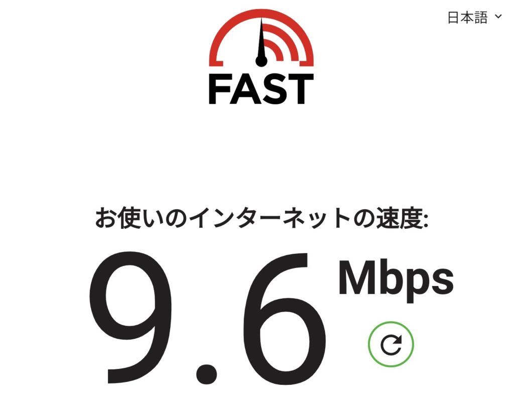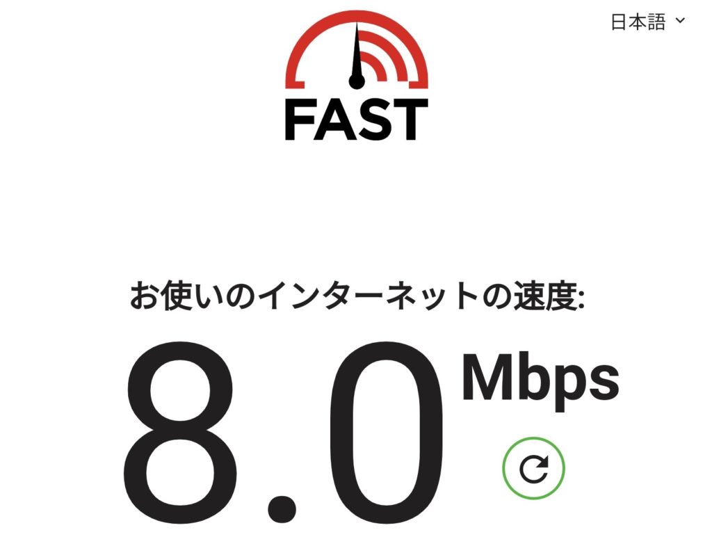 そこで、モンスターモバイルの速度はどれぐらい出ているのか?を調べるため、「Fast.com」と「USEN GATE 02」のスピードテストサイトで測定してみました。