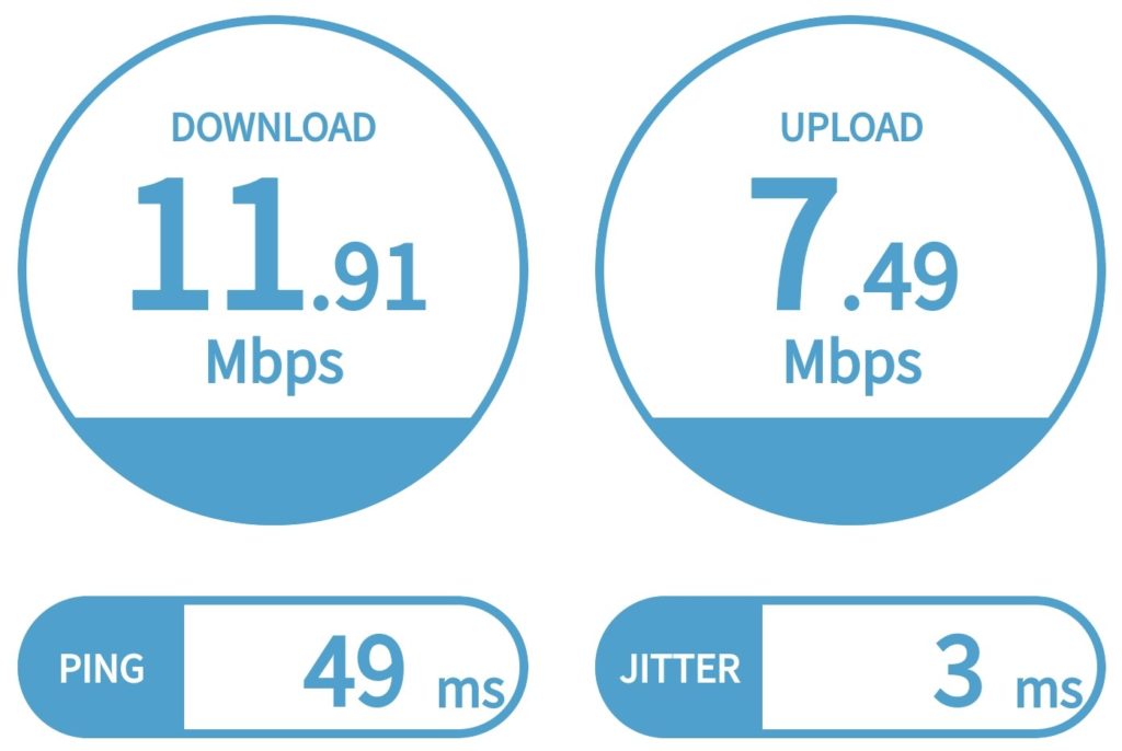 ちなみに、光回線の最大1Gbpsサービスでも70~200Mbpsほど出れば良い方なので、最大速度が約7分の1程度ということを踏まえると10~30Mbpsが妥当なところだと思います。